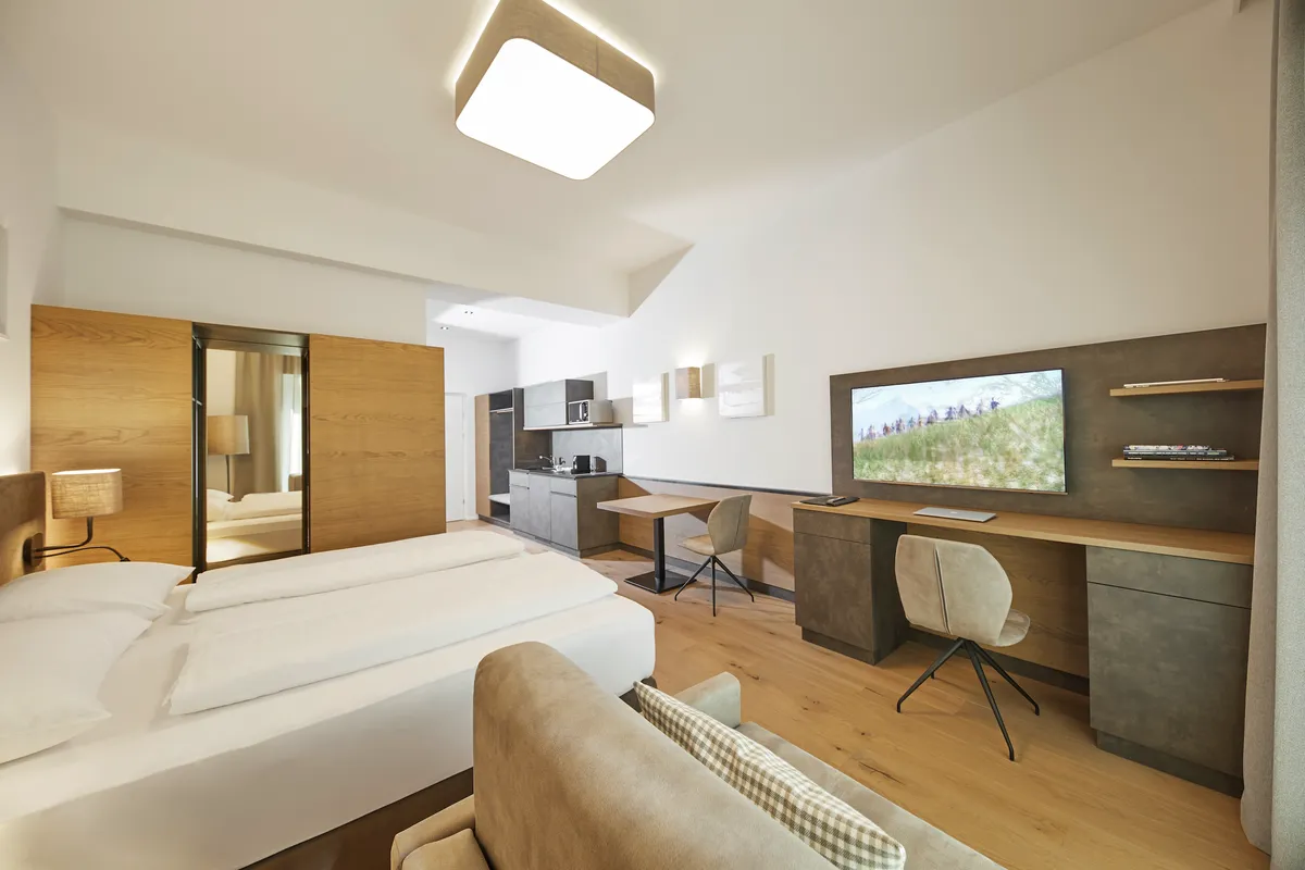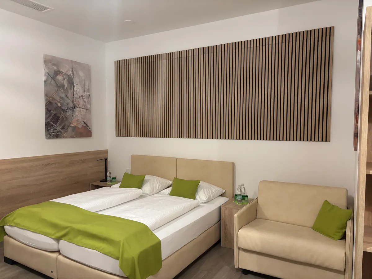 Komfortable Zimmer, viele davon mit privater Infrarotkabine, dazu Frühstück und ein eigener Fitnessbereich für einen entspannten Start in den Tag. Ein Ort zum Abschalten, Auftanken und einfach gut übernachten.